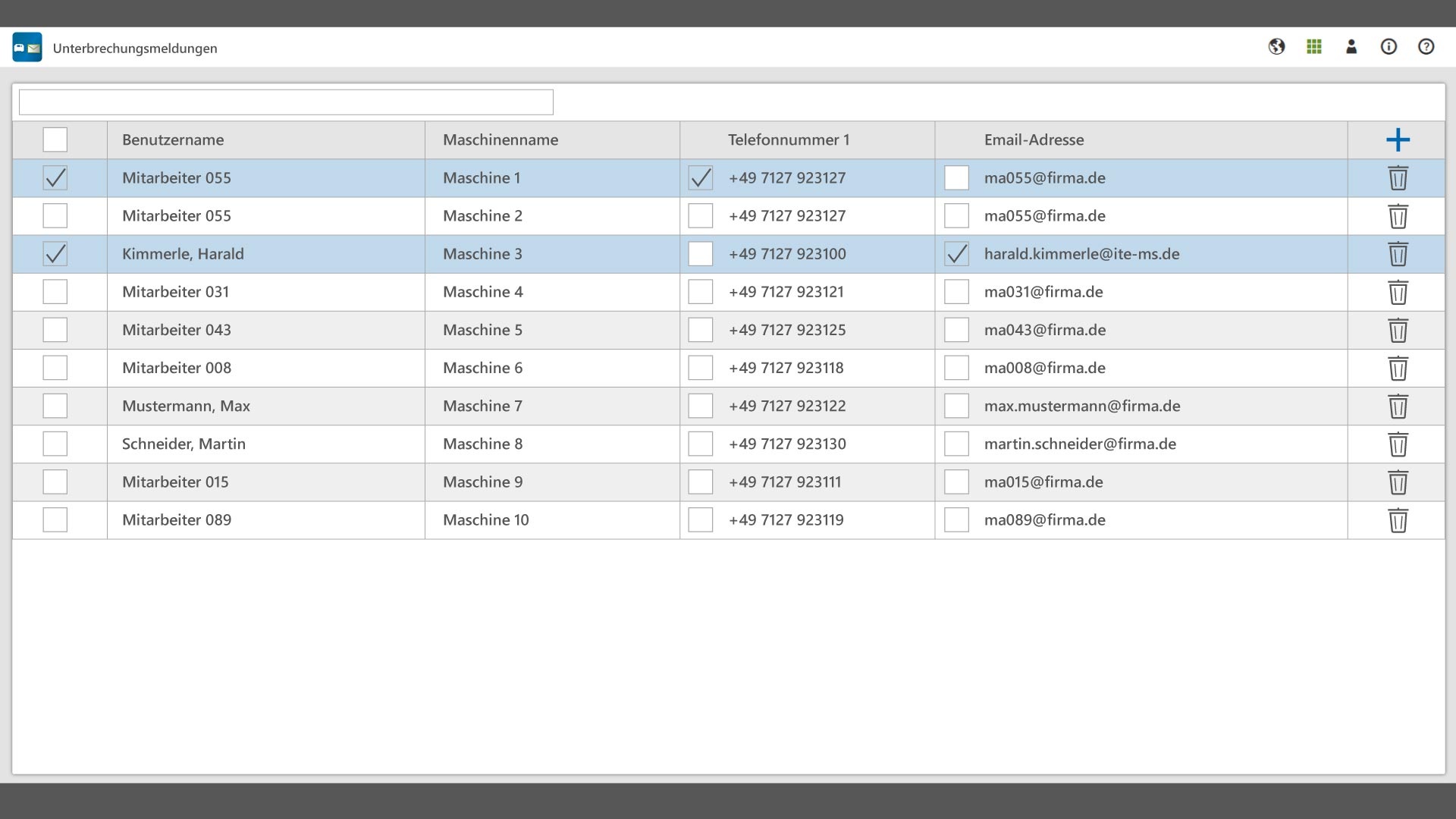 Das Modul EMC Message der MES-Software EMC unterstützt bei Maschinenstörungen den mannlosen Betrieb durch die Alarmierung des Bedieners, wenn seine Maschine nicht mehr produziert. Entsprechend der Störmeldung kann er die notwendigen Maßnahmen kurzfristig einleiten. Stillstandsinformationen von einer beliebigen Anzahl von Maschinen können so als E-Mail oder SMS übertragen werden.