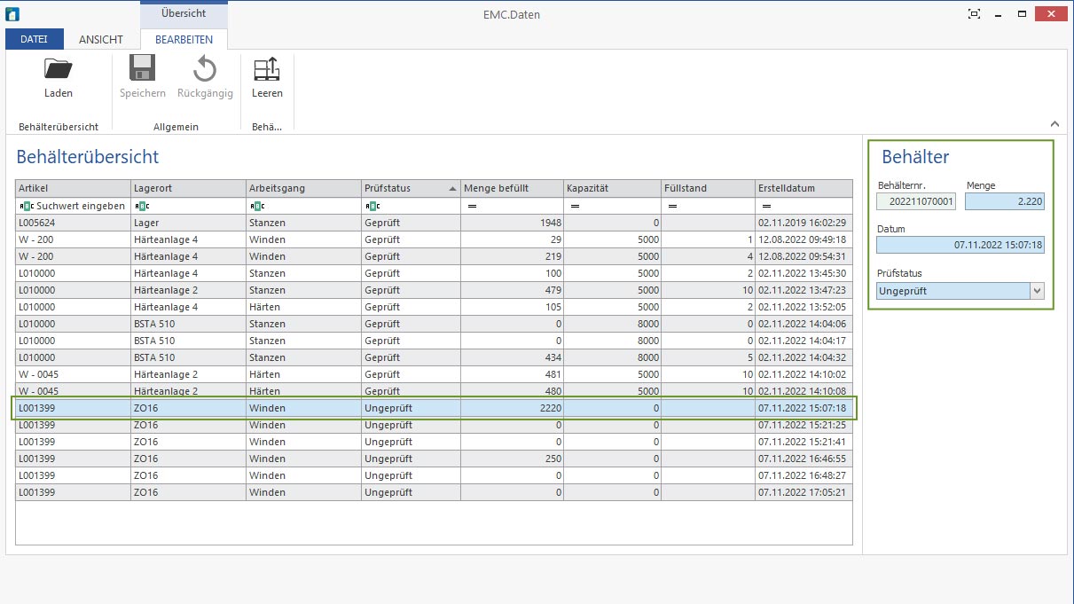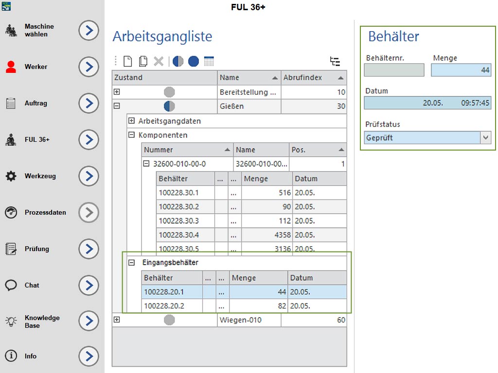 Für jeden Arbeitsschritt werden die Behälter eindeutig als Eingangs- oder Ausgangsbehälter gekennzeichnet und registriert – inklusive der einzelnen Arbeitsschritte und Zwischenlager.