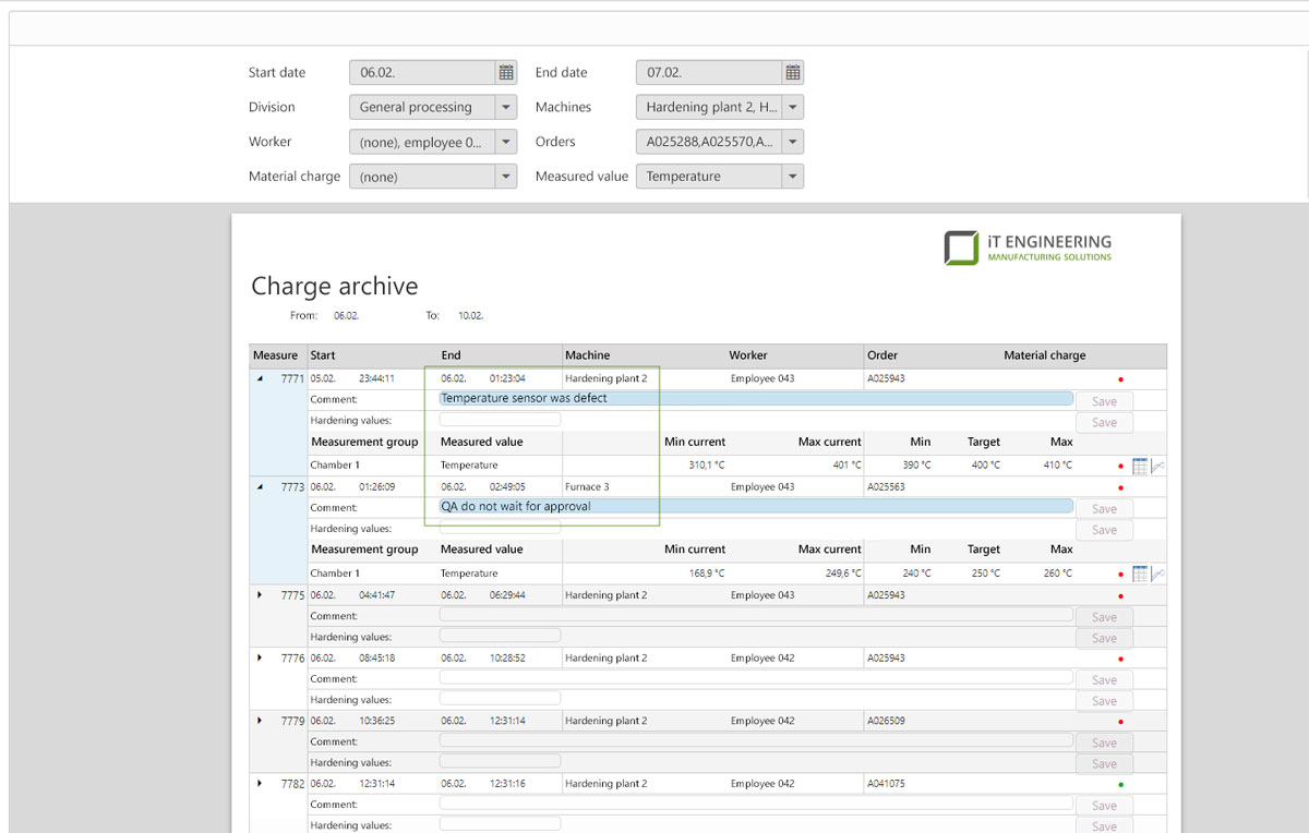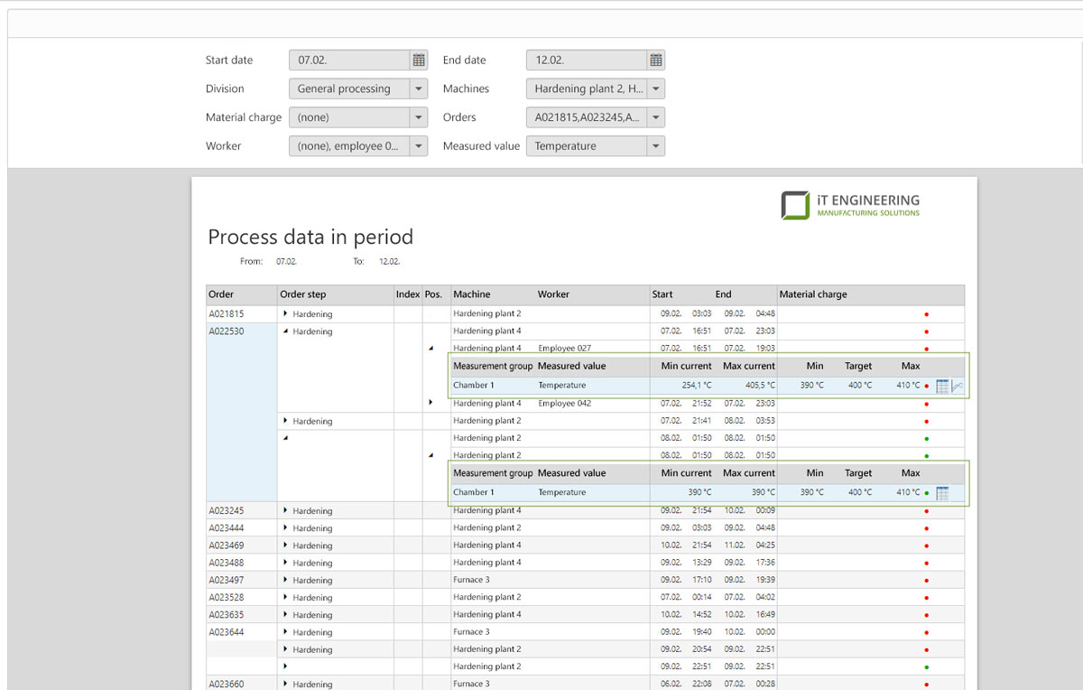The linking of process values with machine and order data as well as the consideration of process sequences create the necessary prerequisite for transparent traceability and holistic analysis and process monitoring of production.