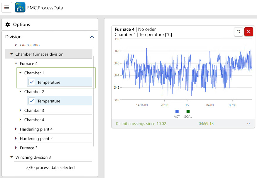 Effectively acquire and monitor process data with the EMC Process Data Acquisition module. It makes the information that accumulates within a process, such as temperature, pressure, energy, etc. … usable. Visualize and document the deviations in the process. Evaluate the process parameters to the order or to the article in larger time periods.