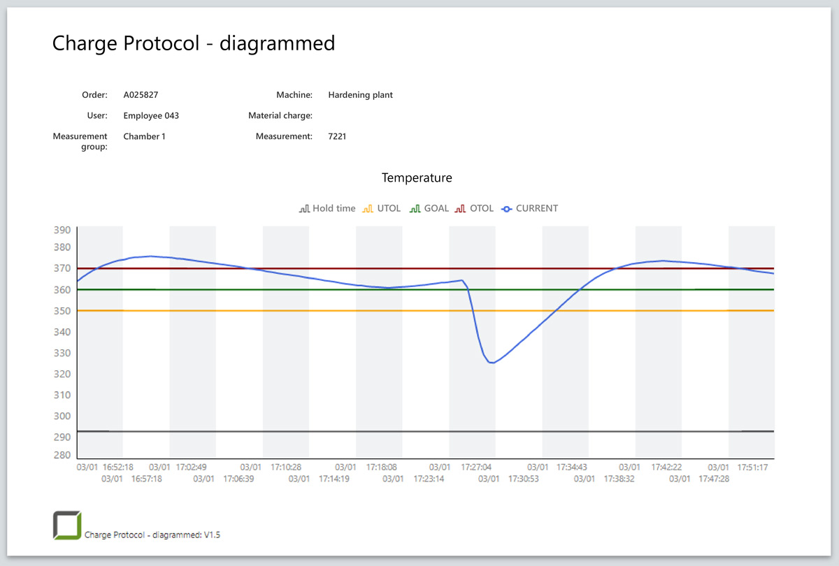 Order- and article-related process data, such as temperature data, are managed and can be evaluated by means of clear reports. This makes it easy to monitor the tempering process. The temperature curves are transparent and can be traced at any time.